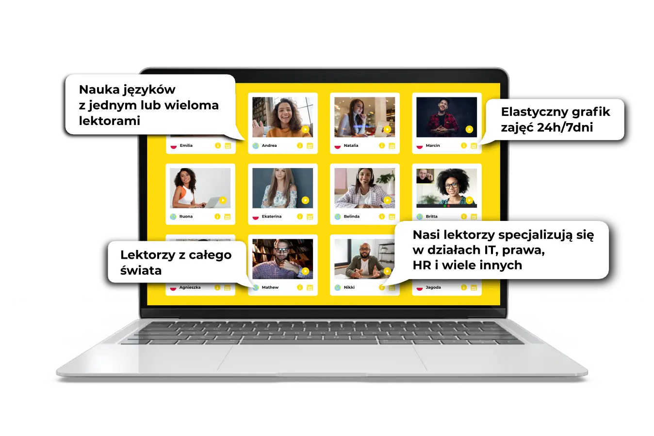 Koordynujemy kursy językowe na terenie całego kraju w trybie online wszystkich Twoich pracowników bez względu na ich lokalizację oddziały lub siedziby.